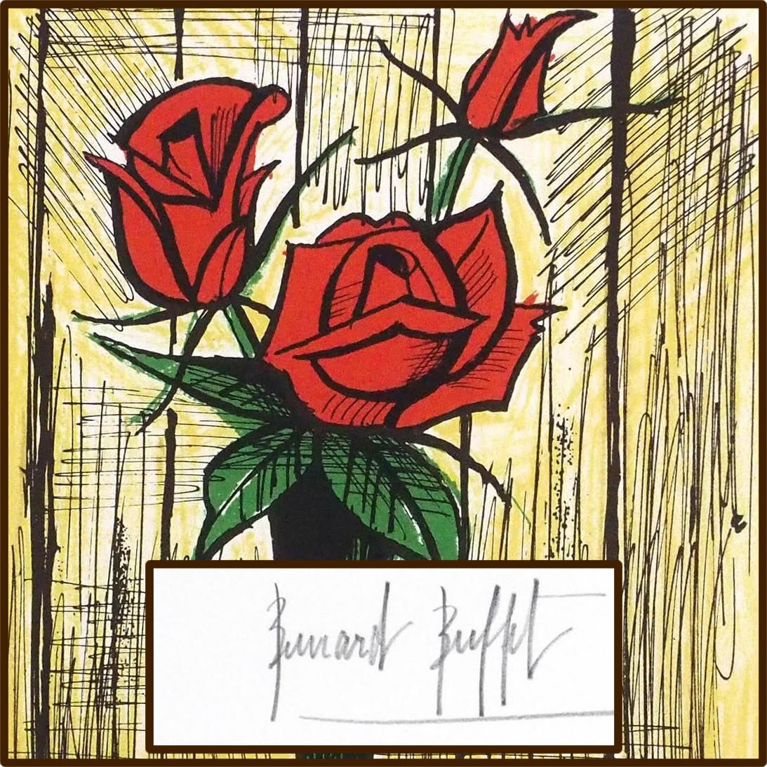■作品紹介 「3本のバラ」ベルナール・ビュッフェによる直筆サイン入りのリトグラフです。 1928年フランス生まれ。1944年エコール・デ・ボザールに入学し、ナルボンヌに師事。1947年アンデパンダン展、サロン・ドートンヌに出品。1948年ジュンヌ・パンチュール賞、クリチック賞受賞。1956年日本初のビュッフェ展開催。1971年レジオン・ドヌール勲章受章。1999年71歳で逝去。