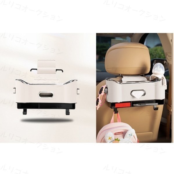 - 【アイボリー】車のシートバック収納ボックス1個 ヘッドレスト隙間差し込み レザー シートバックケース ティッシュボックス フック付き
