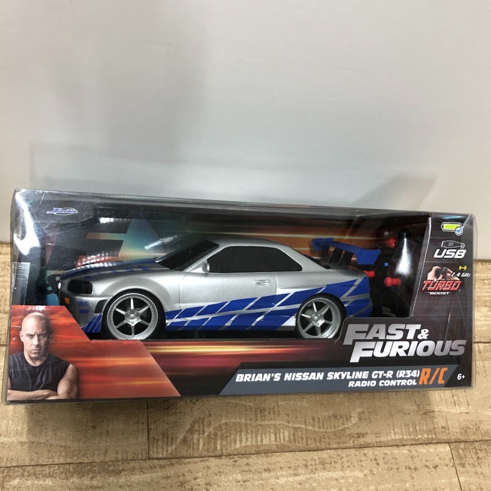 - 08w13179★1円~ FAST&FURIOUS BRIAN'S NISSAN SKYLINE GT-R (R34) 1/16スケール RC ラジコン ワイルドスピード スカイライン 中古品