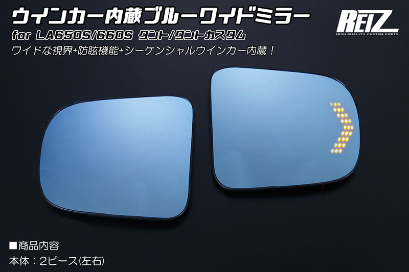 - 流星バージョン LA850S/LA860S ムーヴキャンバス ウインカー内蔵 ブルーワイドミラー 流れる ウインカー シーケンシャル ダイハツ