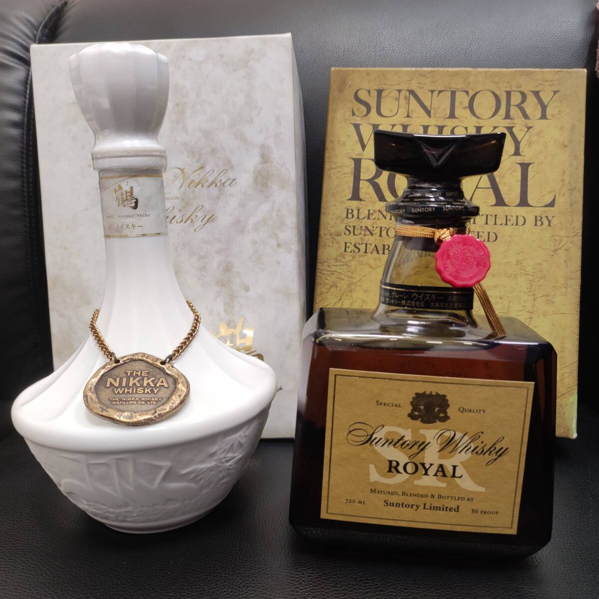 - 神奈川県内限定★ニッカ 鶴 陶器ボトル 700ml 43% 総重量1442g / サントリーローヤル 720ml 43% 外箱付 未開栓 古酒