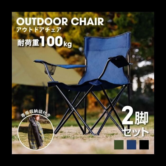 - アウトドア チェア 2セット 軽量 椅子 折りたたみ 耐荷重100kg キャンプチェアー レジャー コンパクト 収納袋付 ブルー