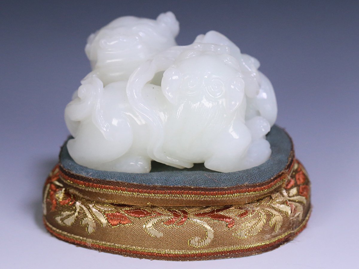 - 【安】清時代 和田玉 白玉 双獅置物 極細工 古置物 古擺件 中国古美術 時代物 古董品 308