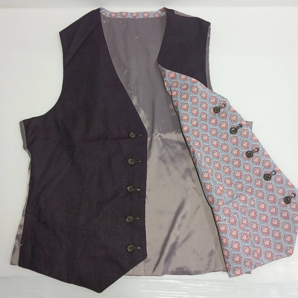 - MICHEL KLEIN HOMME ミッシェルクランオム メンズ 総柄 ベスト ジレ リバーシブルベスト トップス ビジネス カジュアル シワ加工 美品