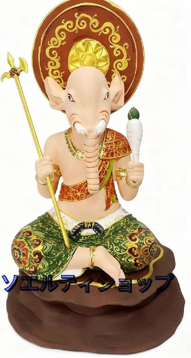 - 【歓喜天 単身坐像】柘植製 聖天 ガネーシャ 仏像 フィギュア 木彫り 置物 総高20cm 極彩色