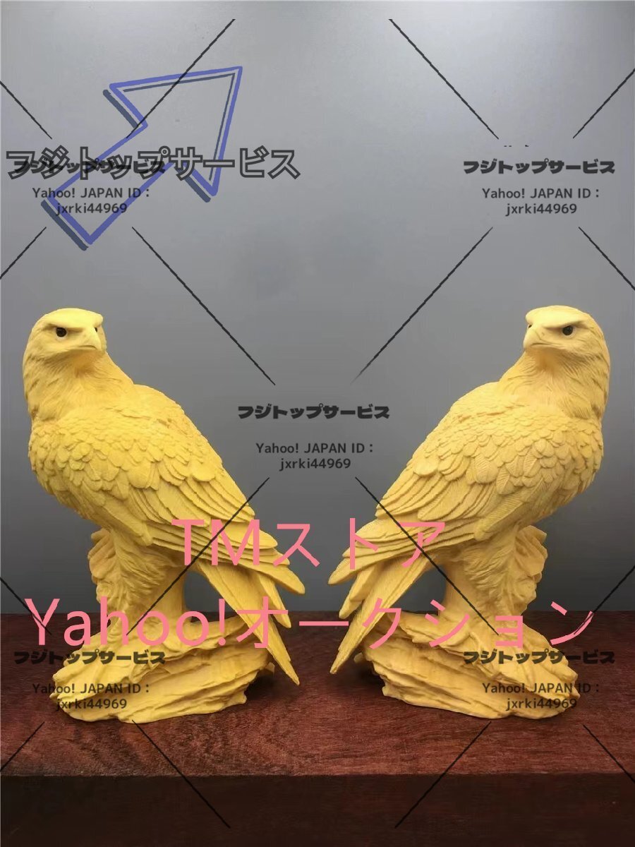 - 木彫り二体一対(鷹)の置物 高級木彫り 縁起物 商売繁盛 幸運 玄関 金運 財運(高さ14cm)
