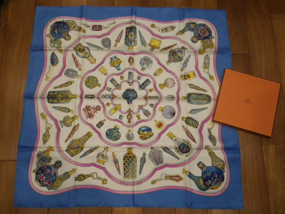- 未使用箱入り エルメス 香水瓶モチーフ スカーフ シルク100%