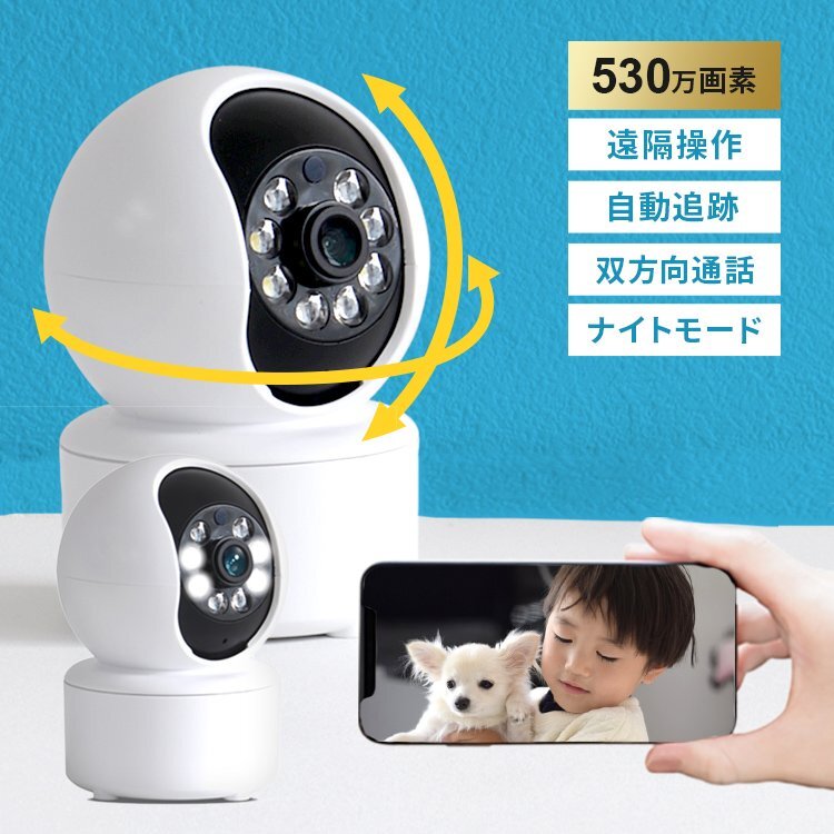> 防犯カメラ 見守り ペットカメラ 一年保証 家庭用 ベビーモニター 530万画素 1080p 自動追跡 スマホ対応 wifi ワイヤレス 遠隔操作 LED