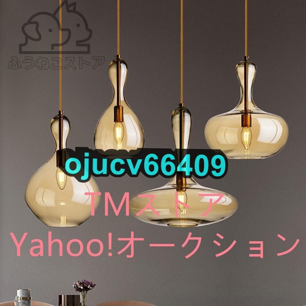 > ペンダントライト アンバー色 ガラス 1灯 北欧風 吊り下げ照明 口金E12 LED対応 引掛けシーリング式ダイニング リビングルーム照明器具