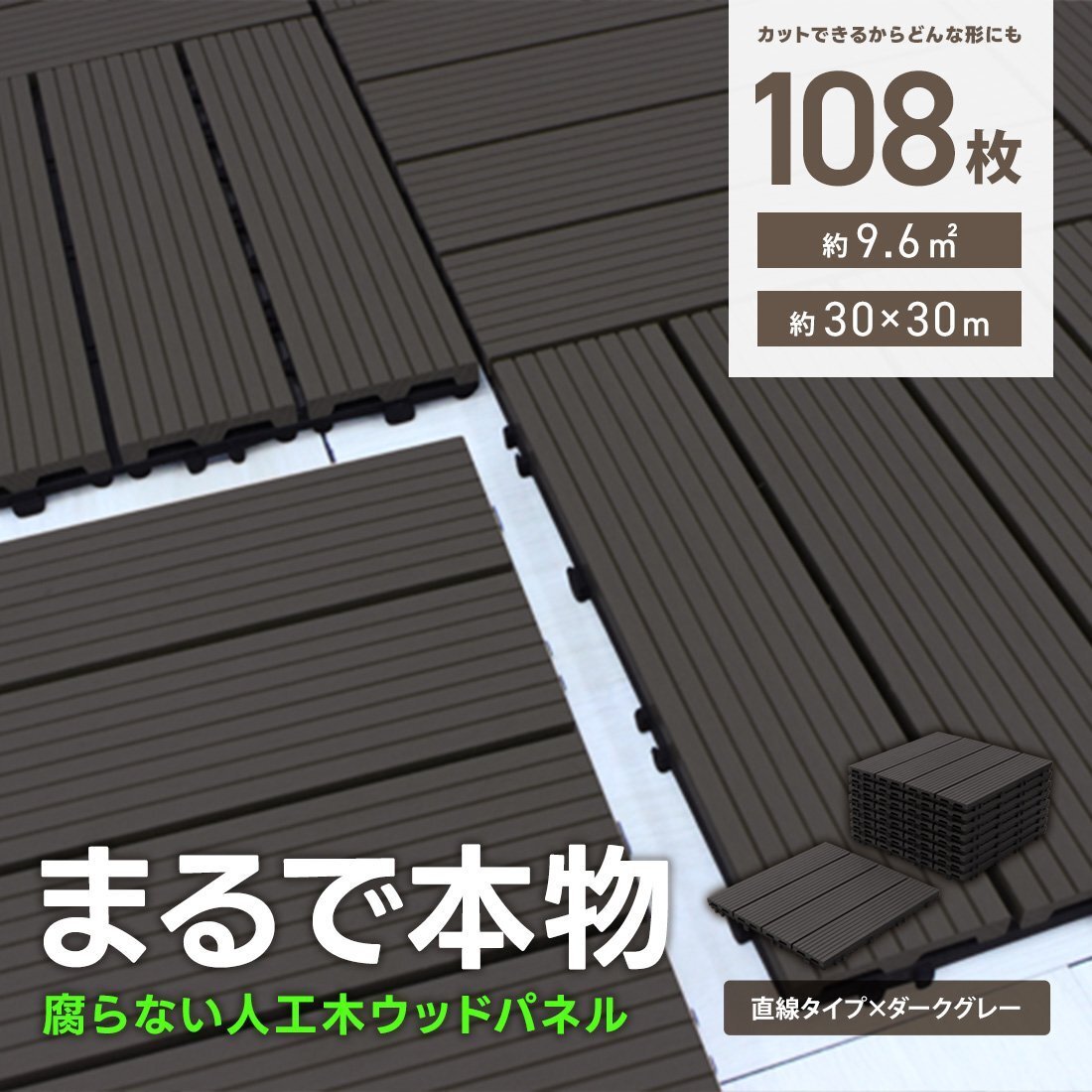 > ウッドパネル ウッドデッキ 人工木 108枚 腐らない ジョイント式 ウッドタイル パネル タイル ベランダ ガーデン バルコニー デッキ 新品