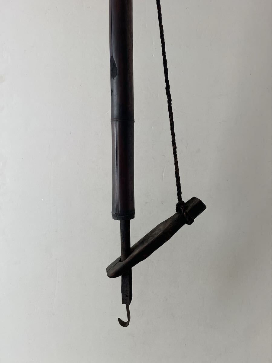 > 竹 木製 自在鉤 / 古民具 古民芸 古道具 囲炉裏 工芸 オブジェ 空間 茶室 酒器 盆 木工 生花 侘び寂び 煤 横木 木彫 民衆仏 大黒 恵比寿