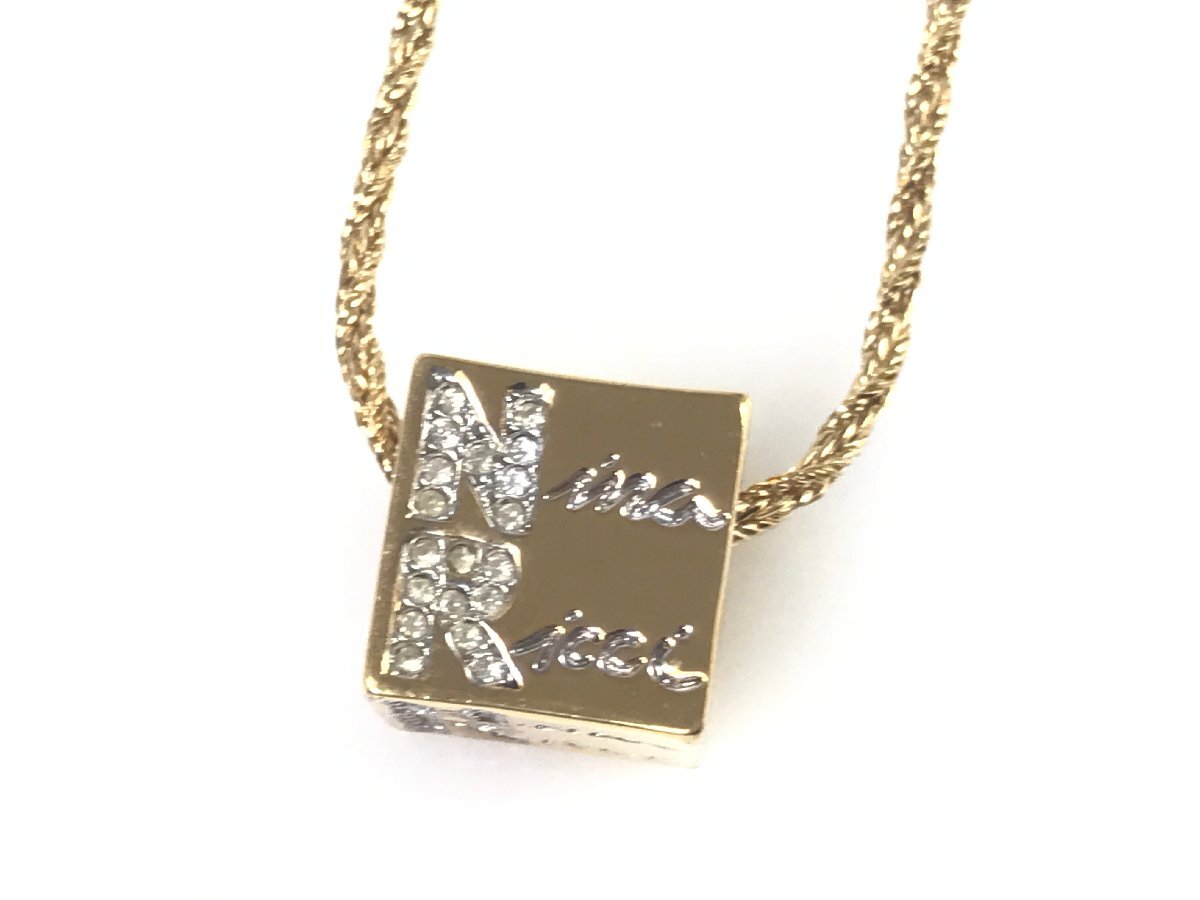- ニナリッチ NINA RICCI ビックキューブ ラインストーン ネックレス ペンダント ゴールドカラー×シルバーカラー 1.5cm角 YAS-11568