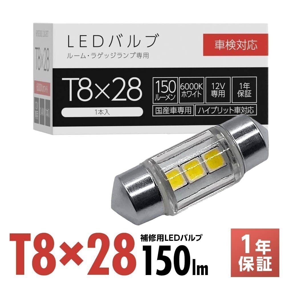 > スフィアライト ルームランプ ラゲッジランプ 専用 補修用LEDバルブ T8×28 6000K 150lm 1本 極性有 1年保証 車検対応 SPHERELIGHT SLHOT8
