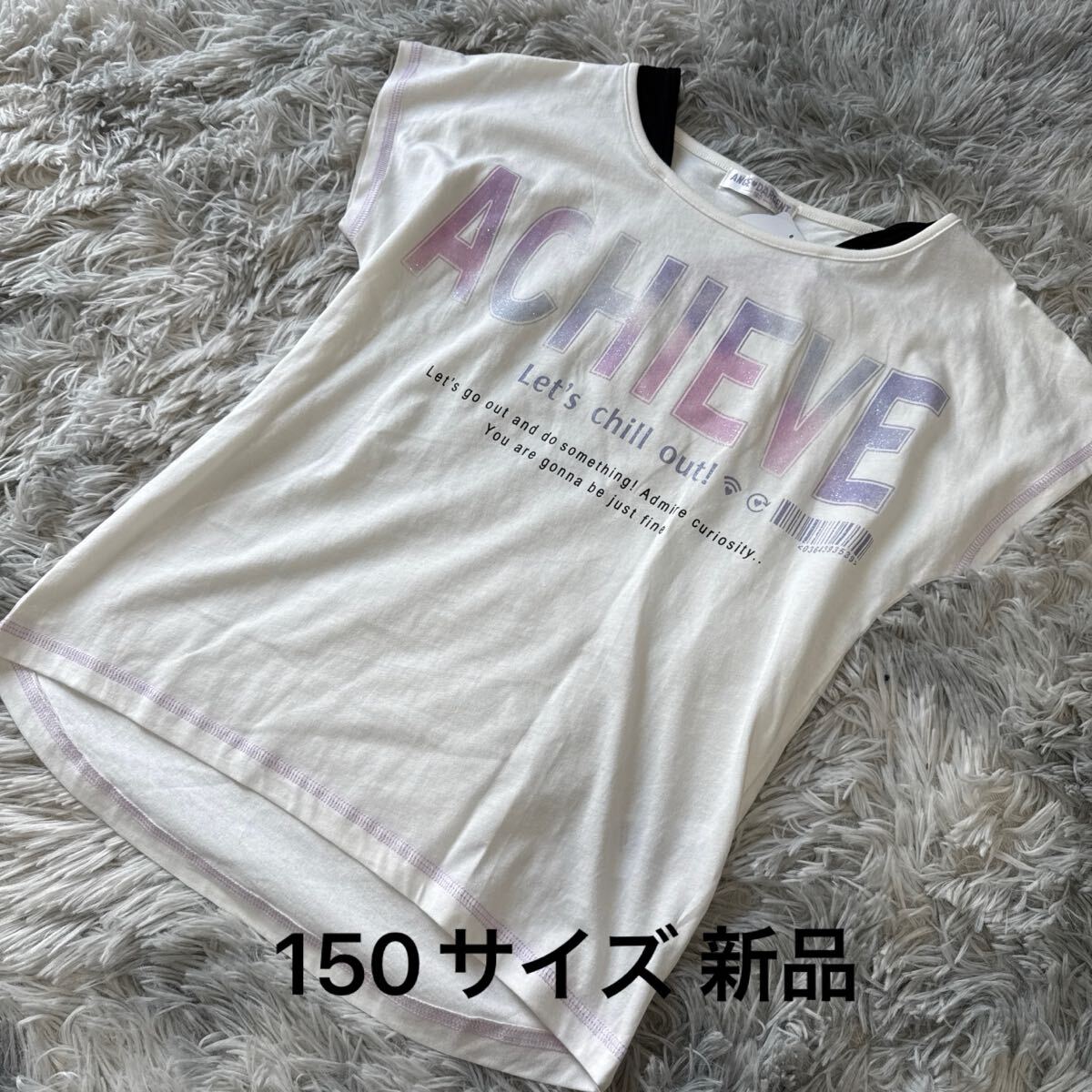 > こども服 重ね着風ラメロゴプリント半袖Tシャツオフ白150★ゆうパケット配送可能★新品20