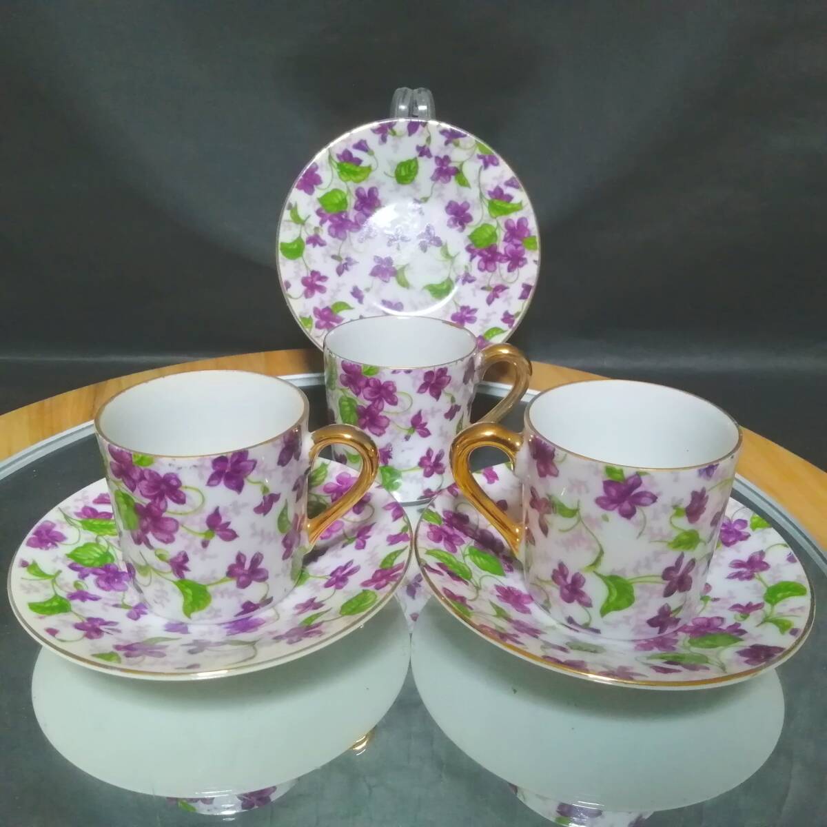 - オールドニッポン◆里帰り ハンドペイント スミレ カップ&ソーサー 3客セット