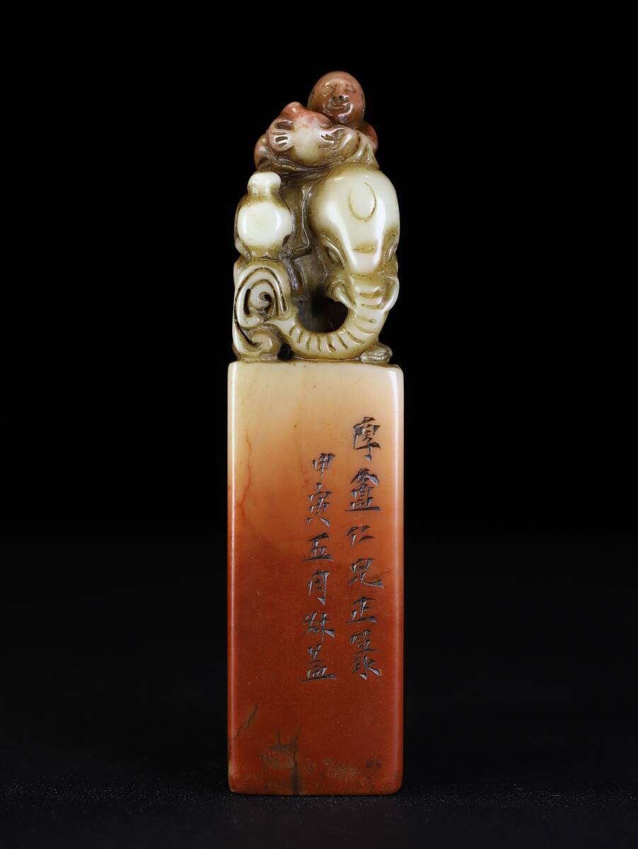 - ◆珍蔵◆中国古美術 清時代 古寿山石彫り太平象 印章 精品 細密細工造 置物 擺件 古賞物 骨董品 時代物 AT17