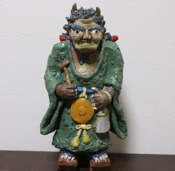 - とてもユニークな大津絵 鬼の念仏 置物 銘があります 焼物 珍品 n411