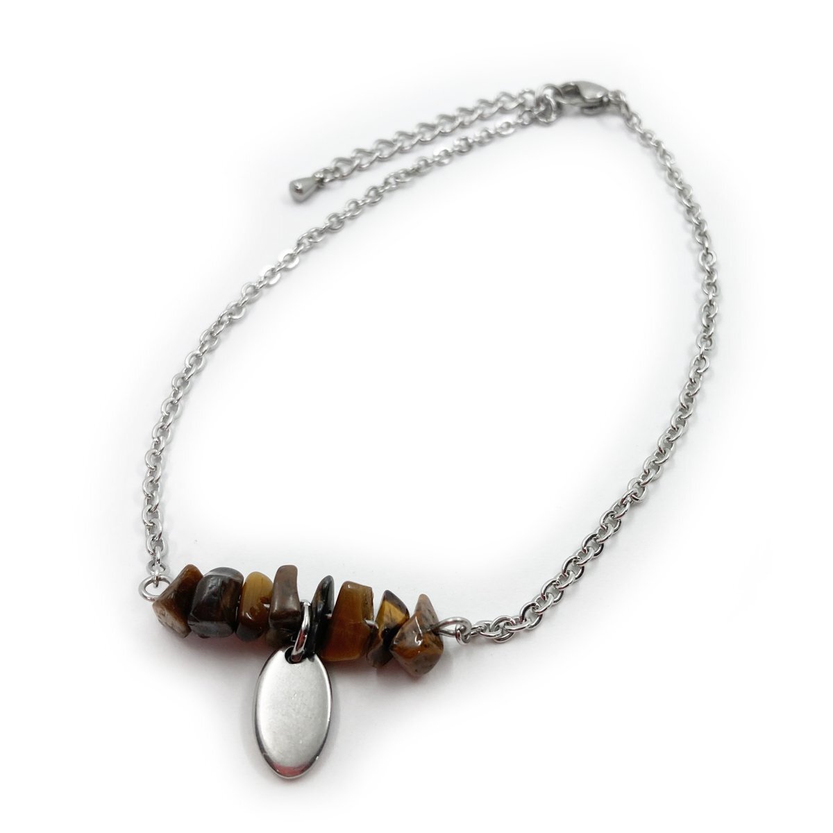 - ステンレスチェーンアンクレット タイガーアイ&チャーム付き 2.4mm幅 28cm(24cm+4cmアジャスター)
