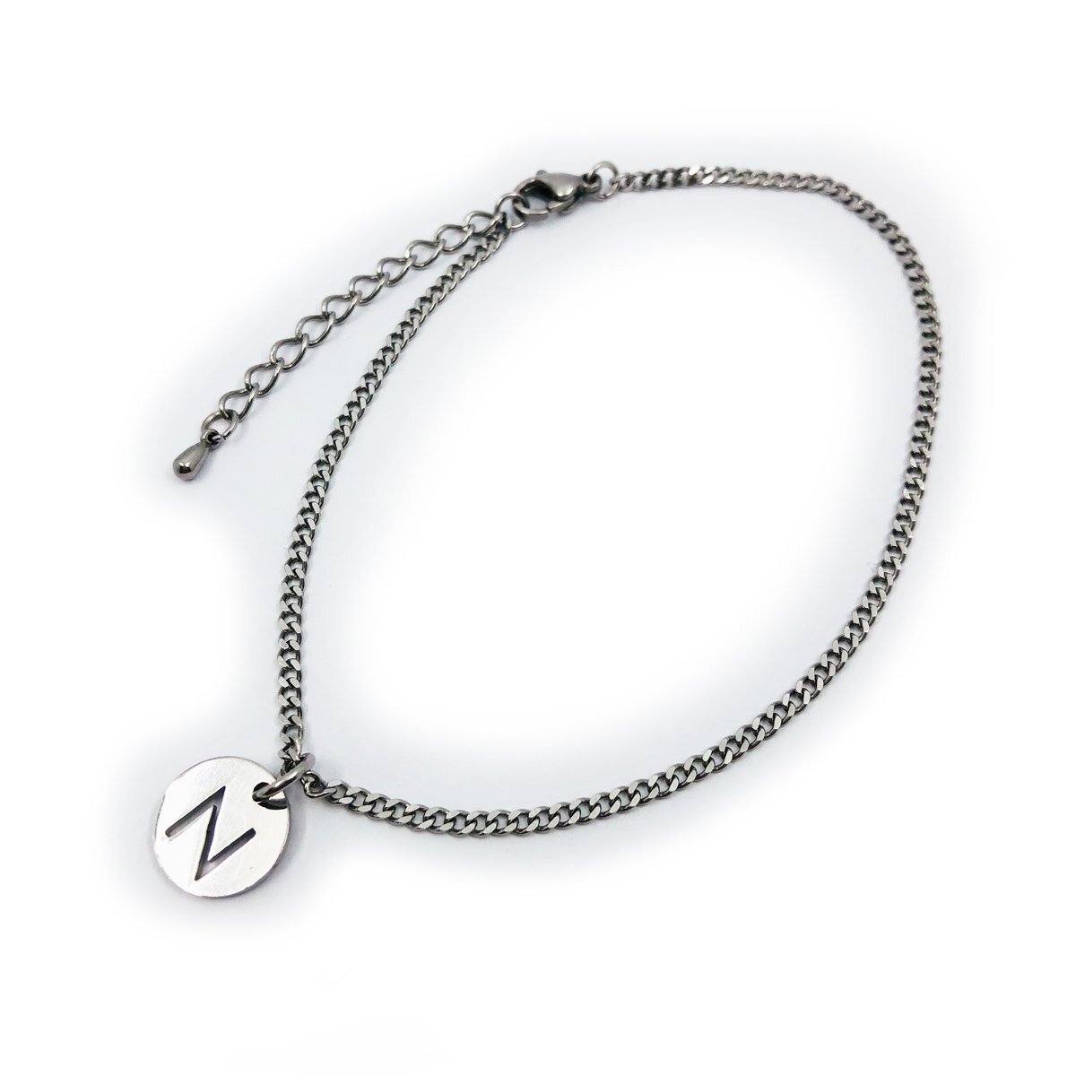 - N イニシャル アルファベット アンクレット ステンレスチェーン 喜平2面カット 幅2.2mm 26cm(22cm+4cmアジャスター)FN213N