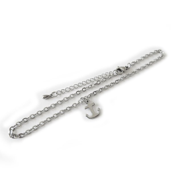 - ステンレスチェーンアンクレット平小豆2.4mm マリンチャーム付き 26cm(22+4cmアジャスター)