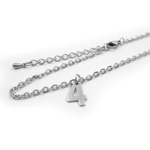 - 4 ナンバー 数字 アンクレット ステンレスチェーン 平小豆 幅2.4mm 25cm(21+4cmアジャスター)
