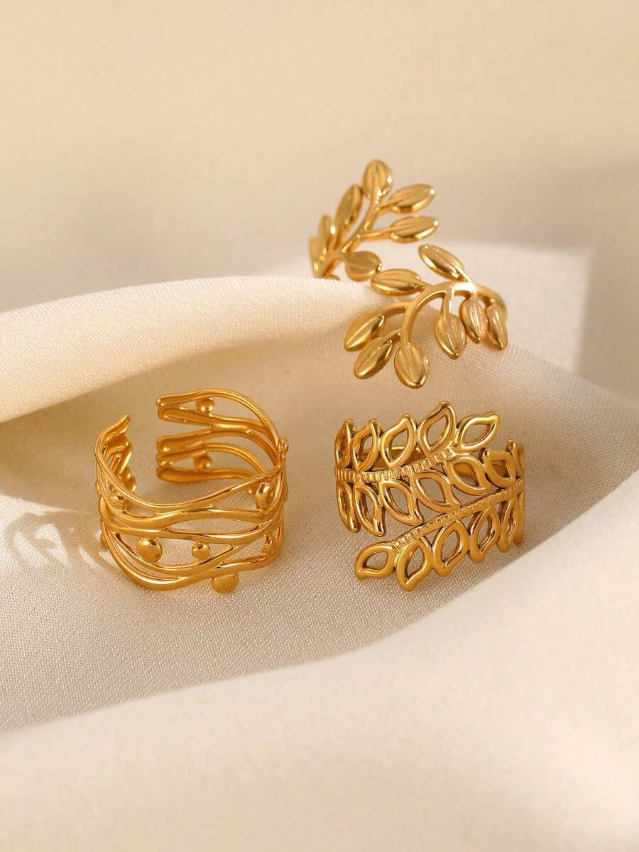- リング レディース セット 3個セット ステンレススチール リーフ ラインデコリング、ファッション 多目的 カジュアル 毎日着用