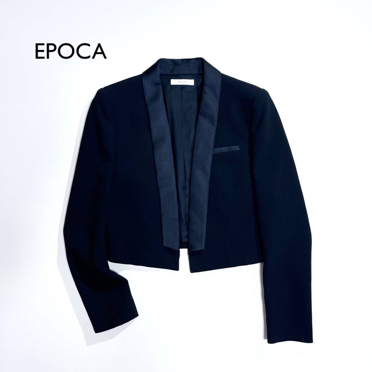 > cj14 EPOCA ブラック フォーマルジャケット ノーカラージャケット シルク40% ショート丈 エポカ