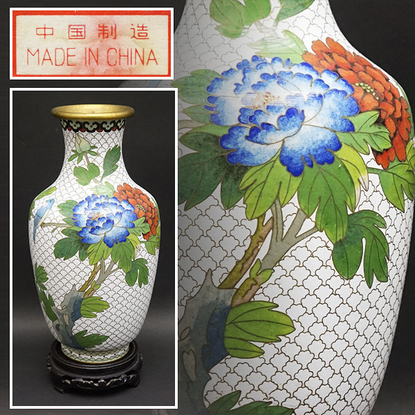 - 中国美術 中国古玩 唐物 景泰藍 底七宝 花瓶 華瓶 花器 年代物 陶芸 工芸 時代 骨董 色絵飾瓶 煎茶道具 茶道具 台座付 古美術品
