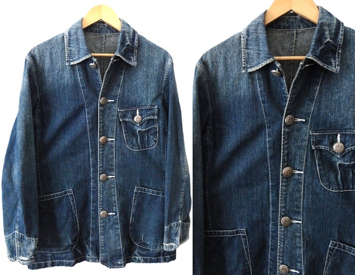 > 50's~60's ヴィンテージ モチーフ/デニム カバーオール ジャケット/ロコジャケット/インディゴ/Msize相当/サックコート