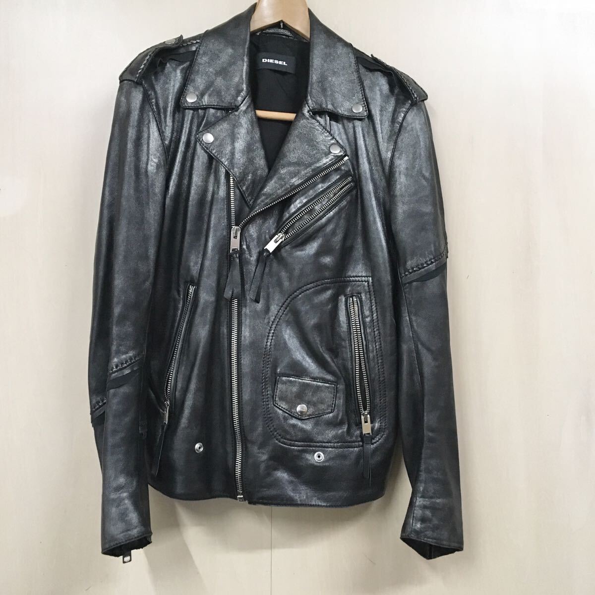 > DIESEL ディーゼル シルバーコーティング シープレザー ダブル ライダース カットオフ Dポケット Mサイズ ブラック ジャケット