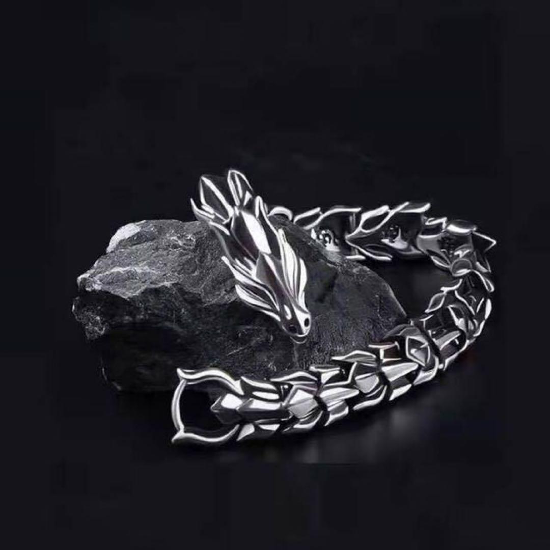 - ドラゴンブレスレット 登り龍 竜 太め シルバー
