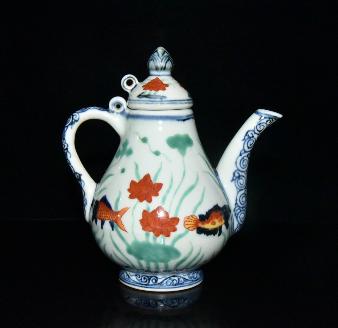 - 『館蔵珍品 明 宣德年制款 古陶瓷品 五彩魚藻紋 執壺 陶藝』稀少珍蔵品 古賞物 貴重物品 収蔵品 中国古美術 時代物 古董品