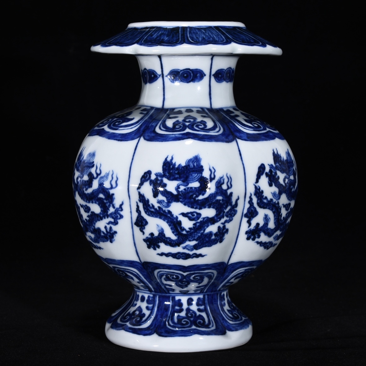 > A_YF0459【惠】人間国宝 中国骨董 陶芸 磁器【明宣徳青花竜紋石榴尊です】工芸品 施釉陶 青花磁 陶芸 置物 收藏品