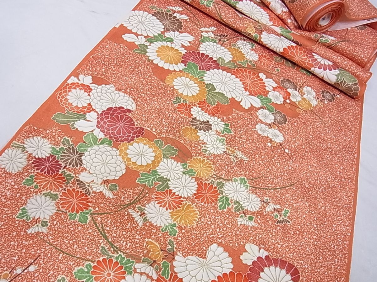 > eふれんず◆小紋 反物 着尺 雲取り草花文 金彩 正絹 美品 未使用品 未仕立て◆bm1759