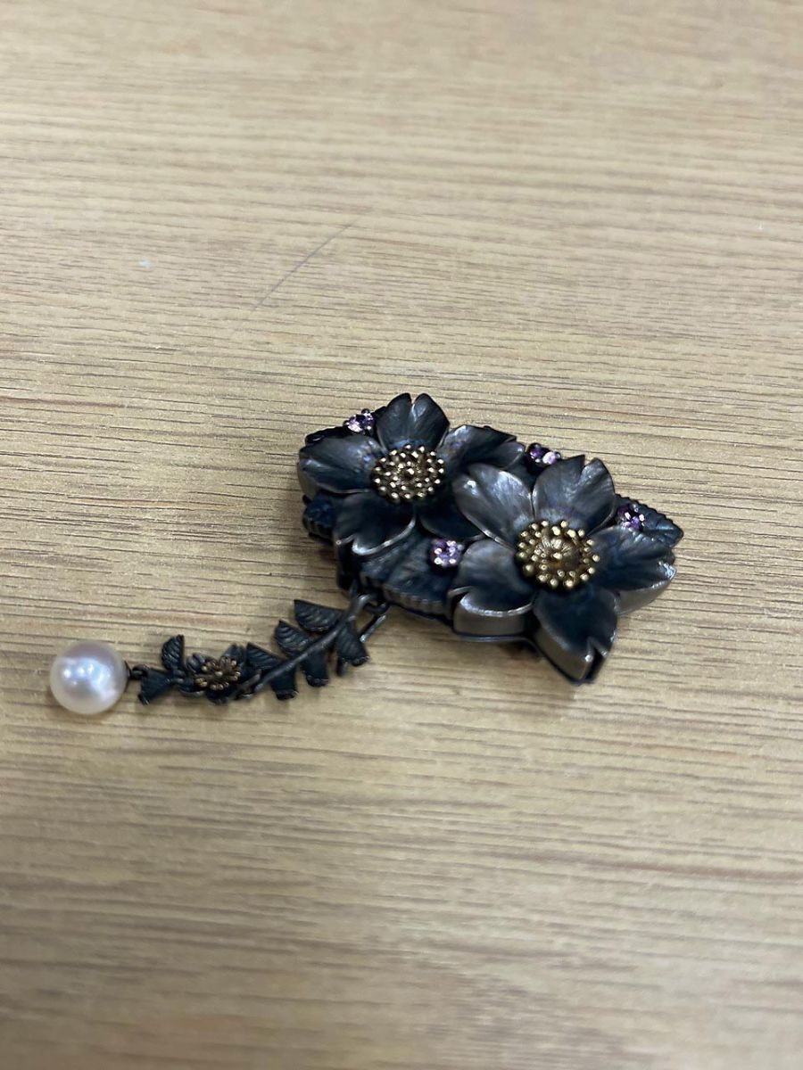 - パール ピンクサファイア シルバー ブローチ 桜 ※一部K18 ★