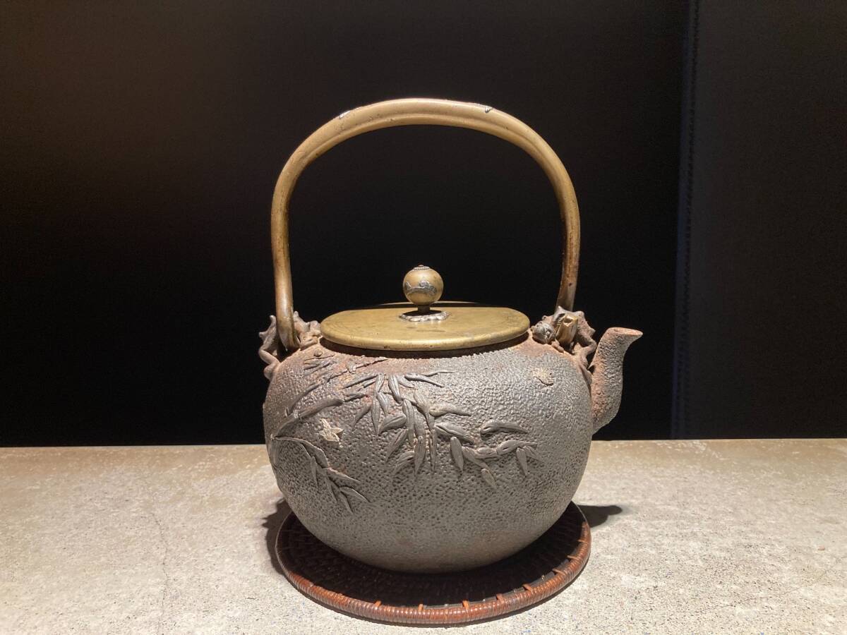 - ■古作 美品 日本亀文 銀象嵌尽くし 竹笹紋 鉄瓶■e煎茶 急須 湯沸かし 鉄壺 鉄器 金属工芸 茶道具 時代物 古美術_