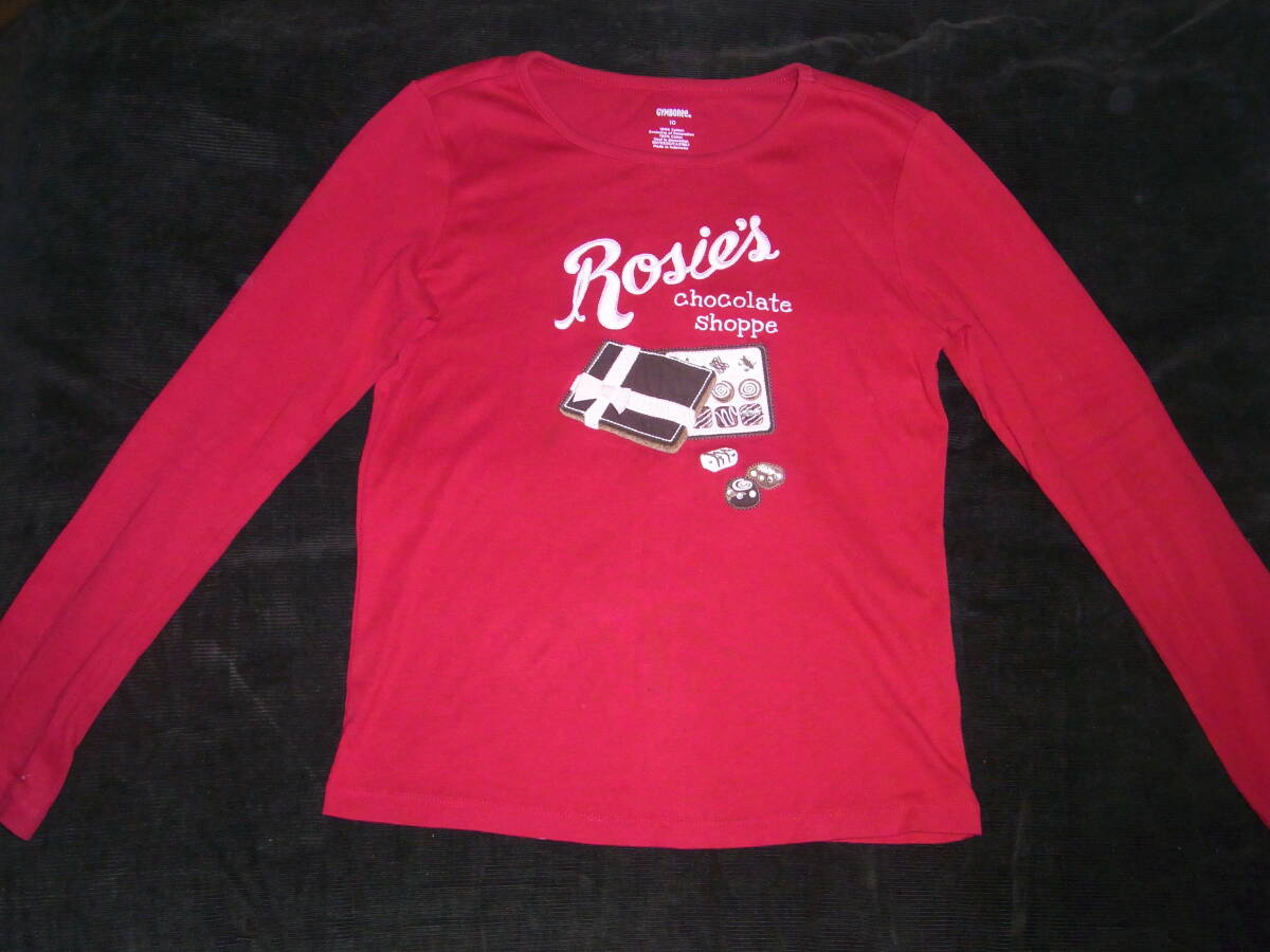 - ★美品★GYMBOREE★ジンボリー★赤ワイン色★豪華チョコレート刺★100%棉★長袖Tシャツ★サイズ130~140㎝