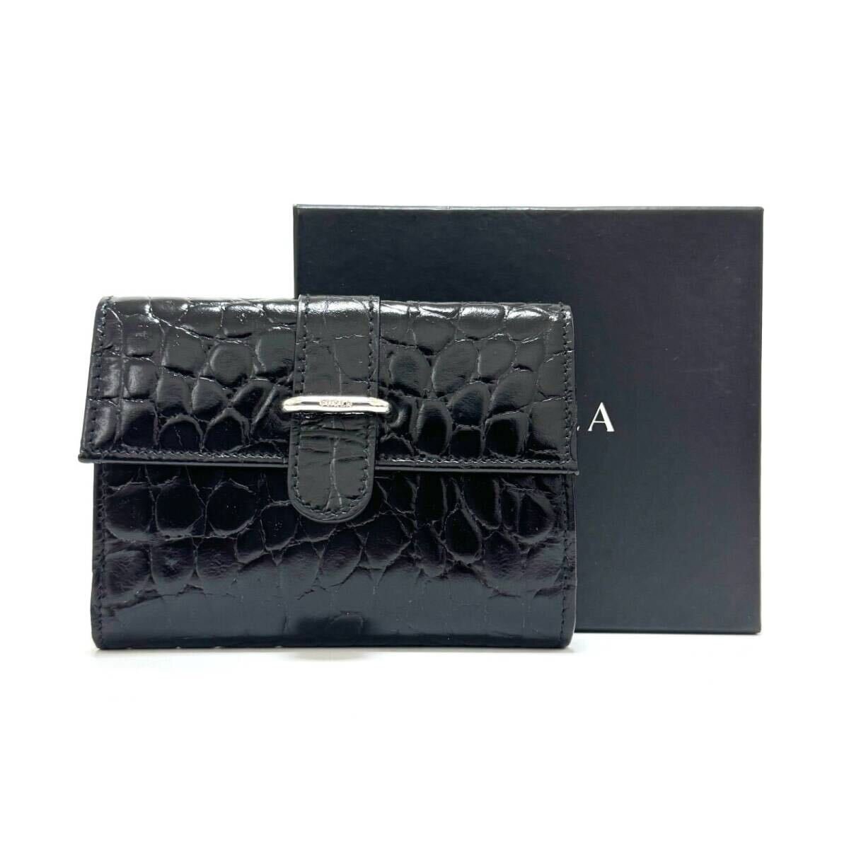 - フルラ 二つ折り財布 コンパクトウォレット ミニウォレット 財布 ブラック 黒 シルバー レザー クロコ 型押し フラップ FURLA