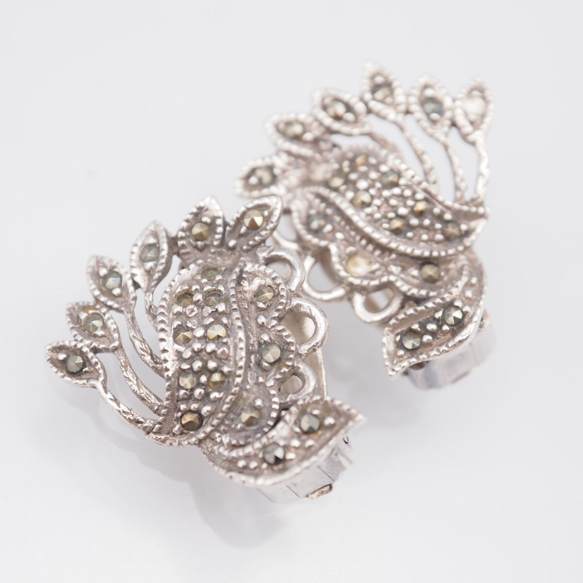 - G391 マーカサイト マルカジット 925刻印 イヤリング デザイン シルバー ヴィンテージ
