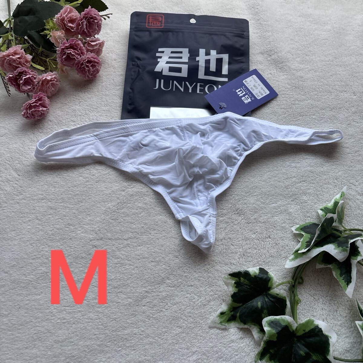> 新品 メンズ Mサイズ JUNYEON 触り心地超いい ホワイト ぴったり もっこり Tバック ビキニ ブリーフ パンツ ショーツ