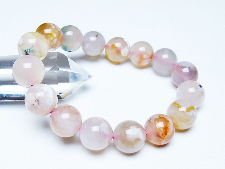 - 銀座東道◆超レア最高級天然桜メノウ チェリーブロッサムアゲート ブレスレット 14mm [T213-2013]
