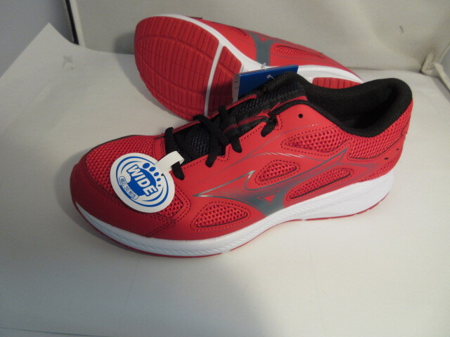 - 26cm メンズスニーカー ミズノマキシマイザー26 mizuno 赤色 合成皮革と合成繊維 幅広 3E幅相当! お仕事履きに! 普段履きに!