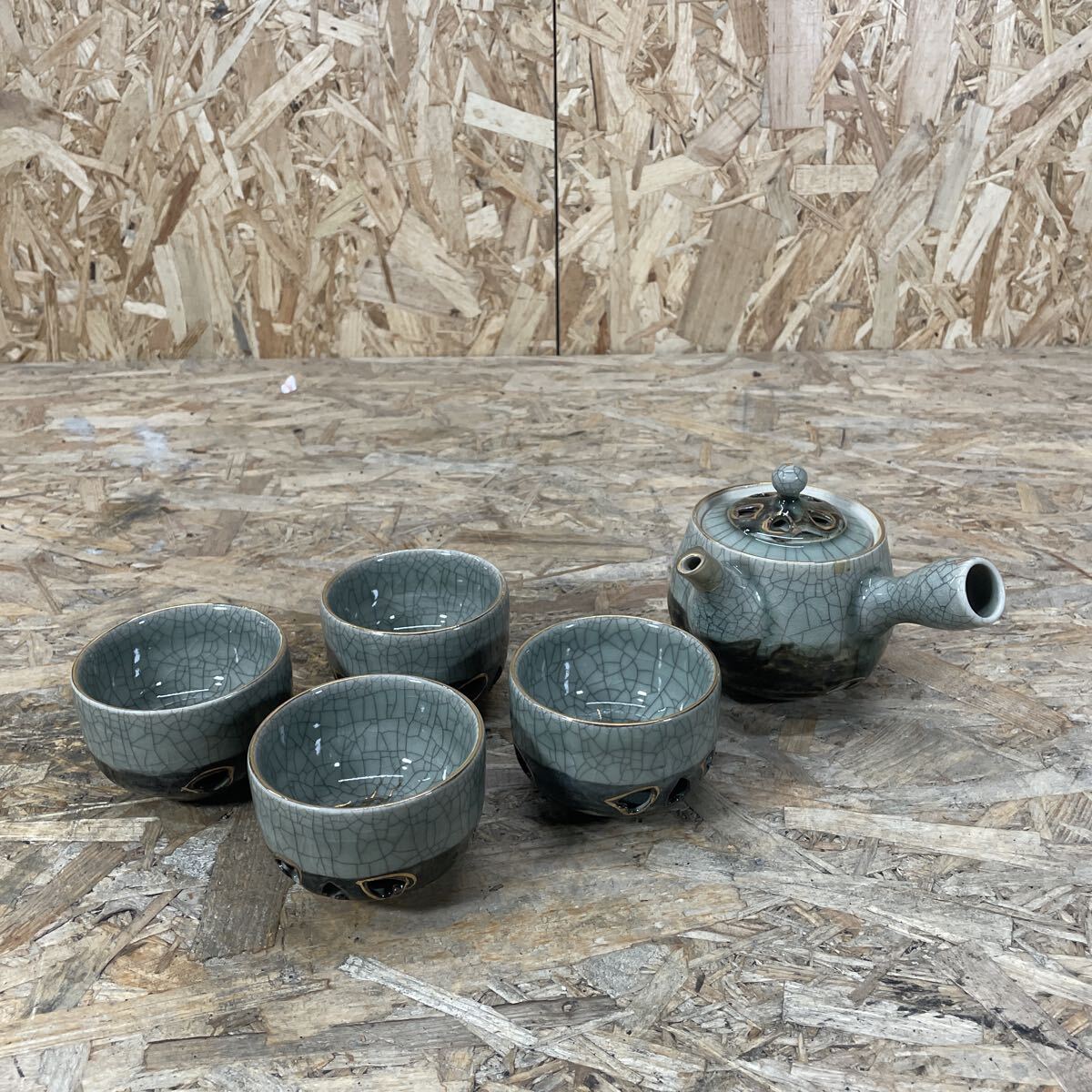 > mdom1003/1円〜/相馬焼/急須/湯呑/在銘/相馬近景造/走駒/煎茶道具/茶器/和食器/現状品