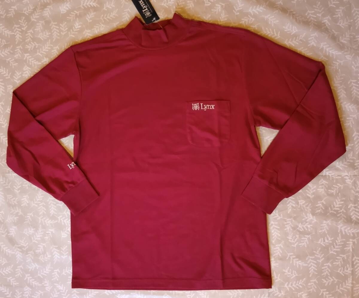 > 未使用品 リンクス LYNX 長袖シャツ サイズM 胸囲88~96 やや光沢 えんじ色 綿25% 細かいメッシュ風 薄手ドライ生地