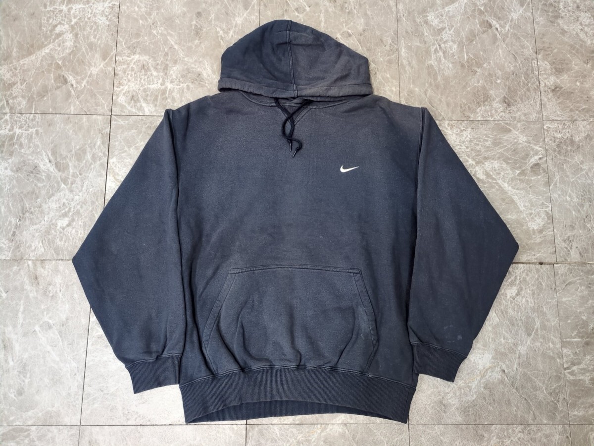 - 8.00s NIKE ナイキ スウェット パーカー フーディ プルオーバー ワンポイント スウォッシュ メンズL ネイビー白 y404