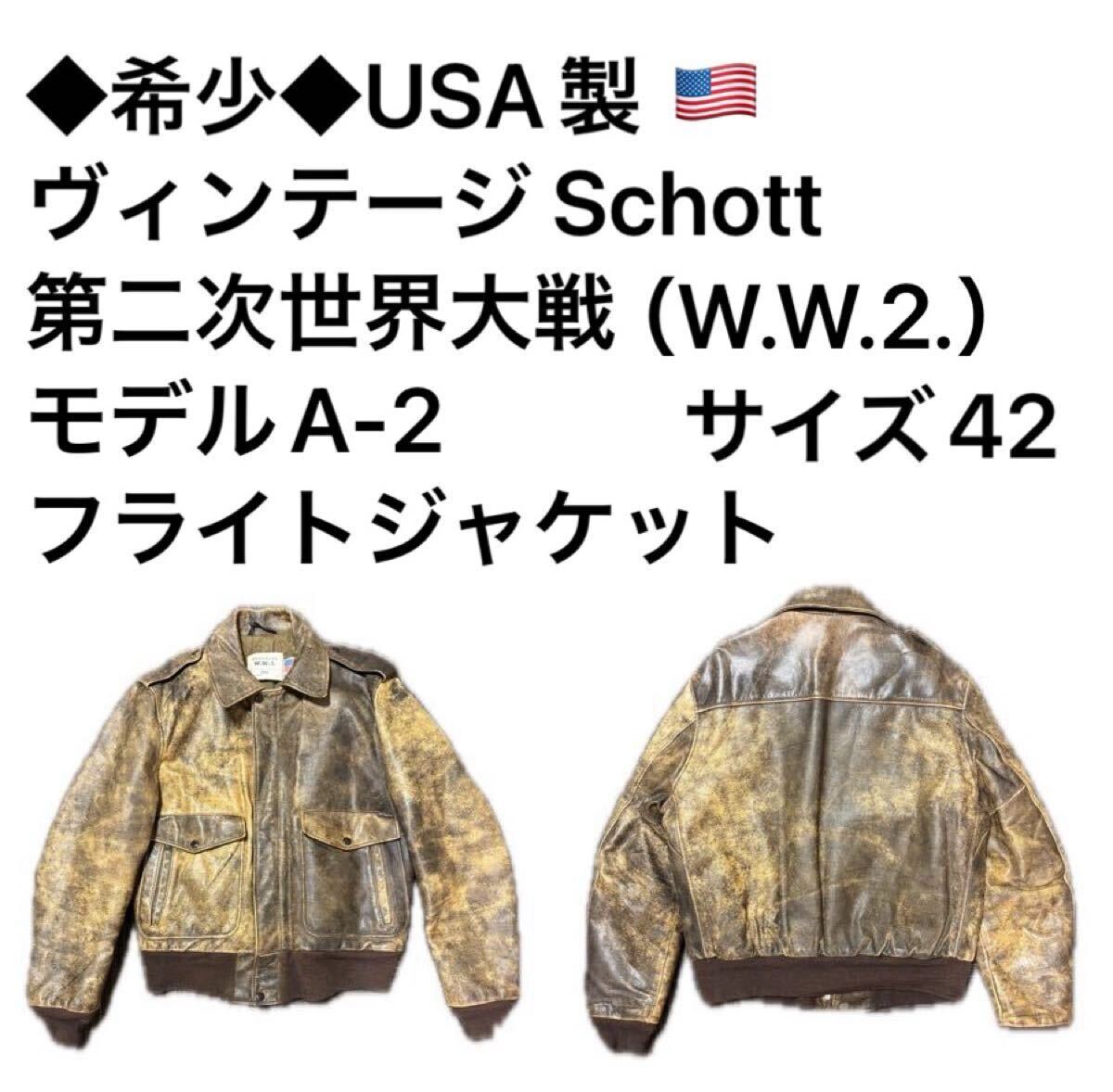 - ◆希少◆USA製 ヴィンテージ Schott第二次世界大戦(W.W.2.)モデルA-2 フライトジャケット サイズ42