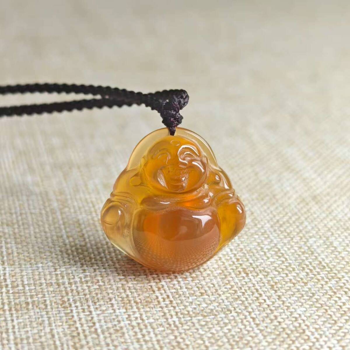 - 初期收集 瑪瑙 糖心瑪瑙 弥勒仏 笑口常開仏 首飾 項鏈 根付 旧家藏出