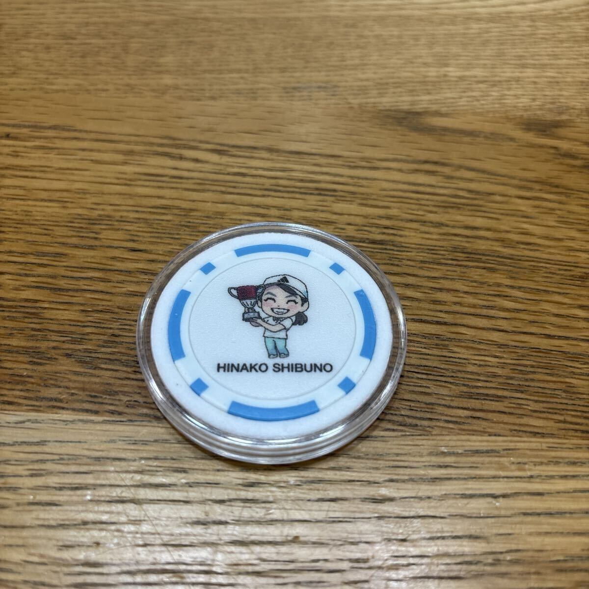 > サントリーレディースオープン ゴルフボールマーカー 渋野日向子プロイラスト入 水色系 未使用品 コレクションケース付 送料込