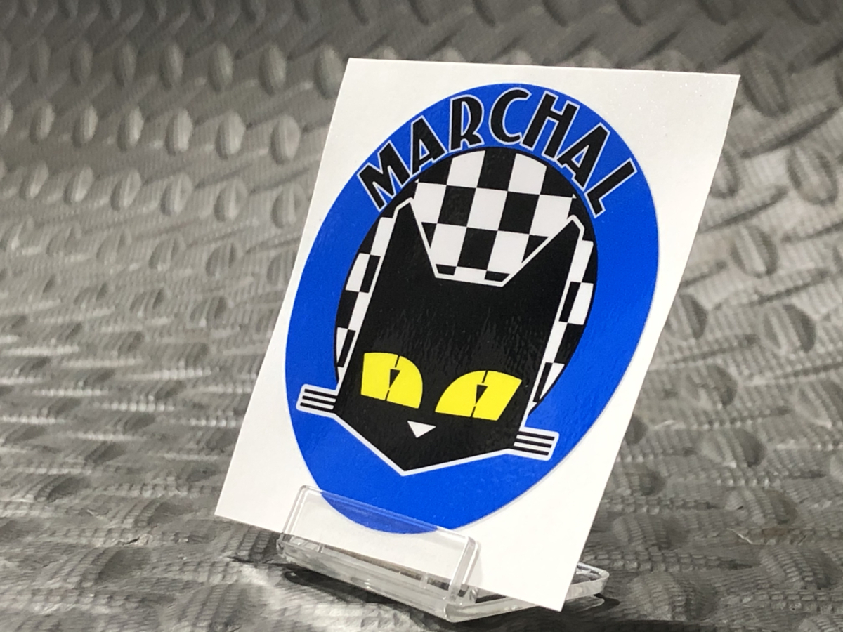 > SEV MARCHAL 正規品 マーシャルステッカー 丸型 ブルー 直径64mm 白 黒 青 ブラック ブルー ホワイト チェッカー 検)Marshall ロゴ 耐候