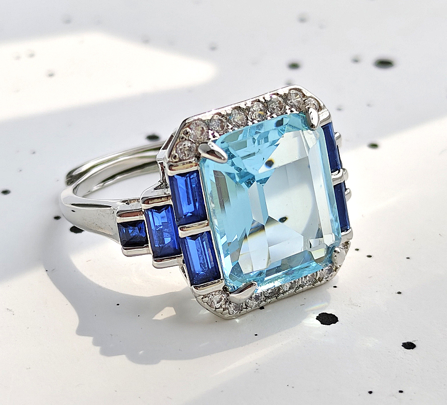 - N251020◆Bigstone◆【天空の藍】魅力的な大粒宝石*ロマンチックの透明感*ファッションなリング 12~15号